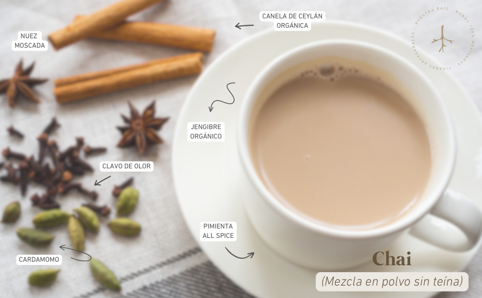 Nuestro favorito y más vendido. Chai en polvo, completamente natural. Son únicamente especias para mezclar con tu leche y tu endulzante favorito.
