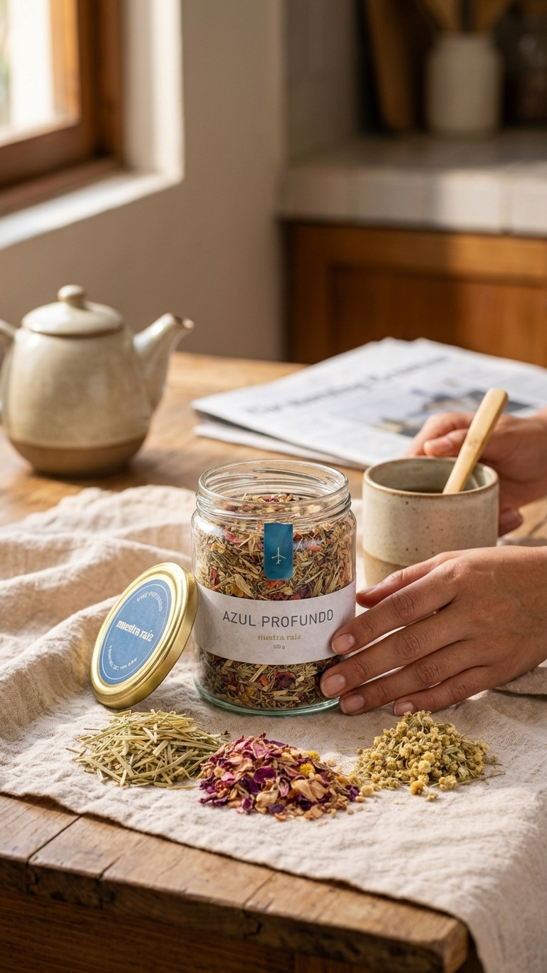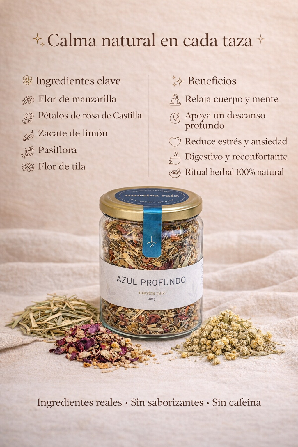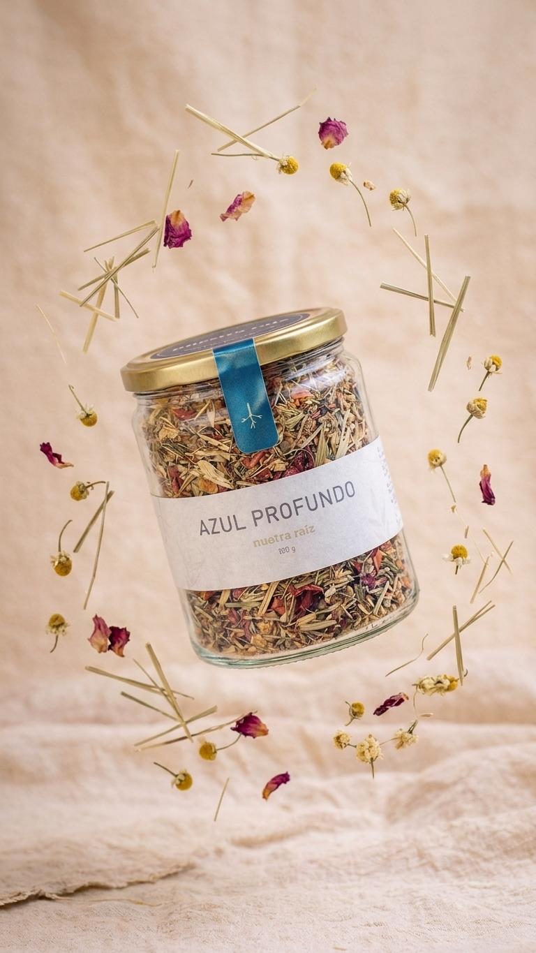 Una infusión herbal profundamente relajante, con notas cítricas frescas y un fondo floral suave. Para cuando el día fue largo y el cuerpo pide que todo se detenga.