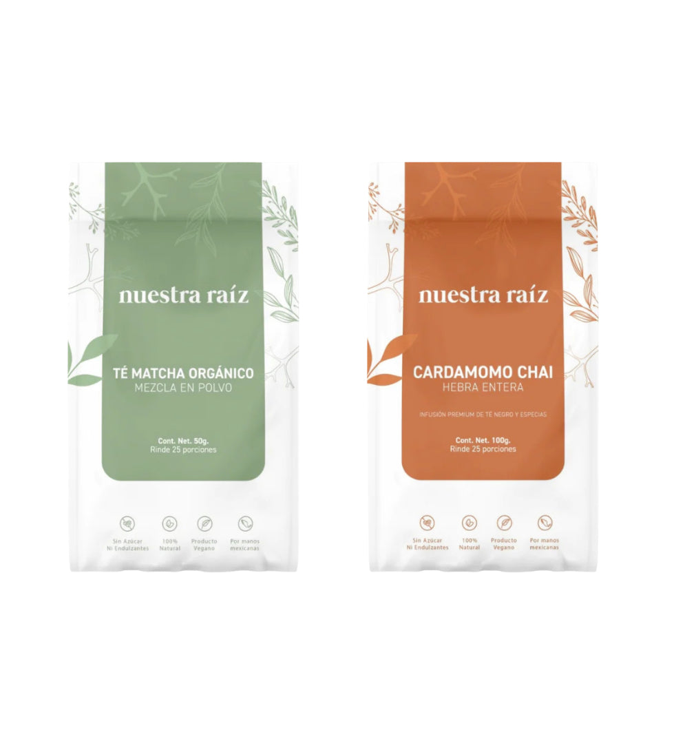 Todas nuestras mezclas están creadas con ingredientes mexicanos que provienen de comunidades indígenas. Los únicos productos importados que tenemos son el té verde, té negro, té oolong y el Matcha.
