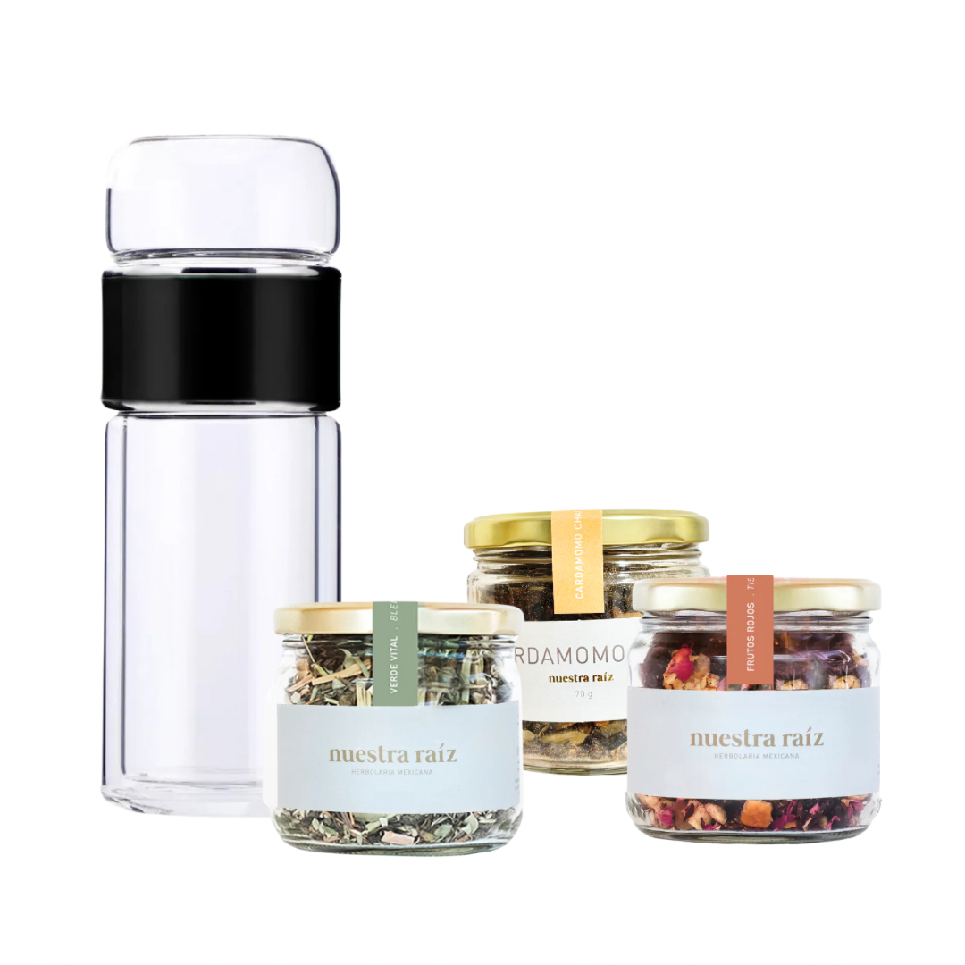 Todas nuestras mezclas están creadas con ingredientes mexicanos que provienen de comunidades indígenas. Los únicos productos importados que tenemos son el té verde, té negro, té oolong y el Matcha.